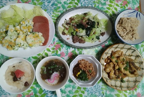 豚カツと鶏むね肉の照焼きでお昼ご飯。