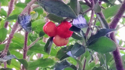 まだ実りますアセローラ・・魚肉ソーセージ入り厚焼き卵のサンドで朝食。