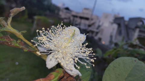 やっぱり綺麗グァバの花‥新たに焼いたパンで卵サンドの朝食。。