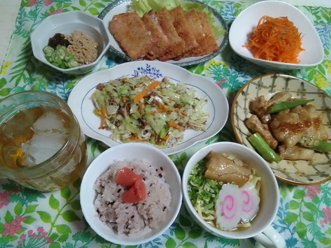 豚カツと鶏むね肉の照焼きでお昼ご飯。