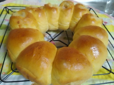 再度…こんばんは。南瓜の角食パンを作りましたが、型に入れて、残った生地で、今回もお楽しみパンを焼きました。丸い形で焼いてみました。あんパンは5···