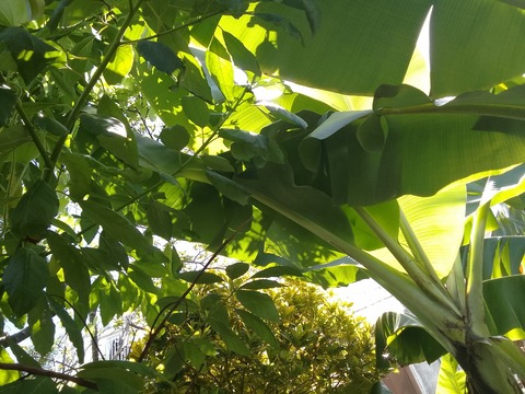 ウインドミルポーク(缶)のサンドイッチで朝食・・パパイヤの木。