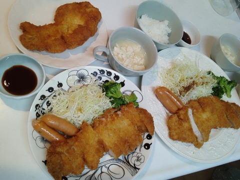 孫の夕食はガツン!と厚切り豚カツ。