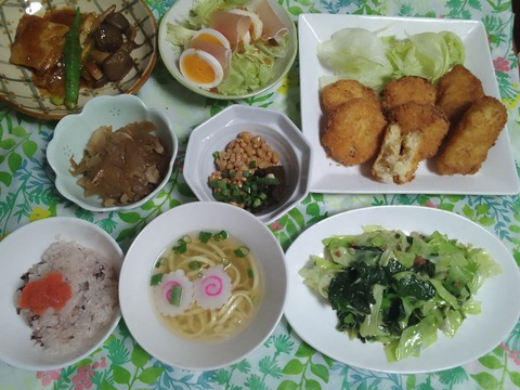 サラダからアレンジのコロッケと鮪の照焼でお昼ご飯。