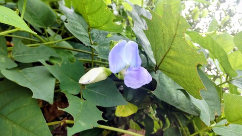 庭のオオタニワタリと‥鶏ハンバーグのサンドで朝食。