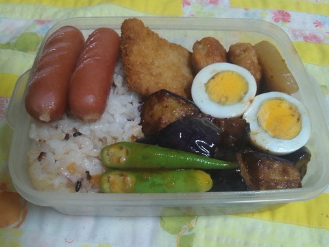 麻婆冬瓜とビアハムのコールスローフライでお昼ご飯。