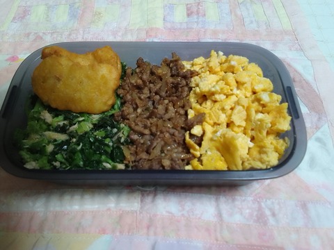 麻婆冬瓜とビアハムのコールスローフライでお昼ご飯。