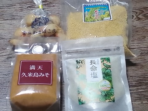 離島フェアに行った娘から貰ったものと…孫の夕食。