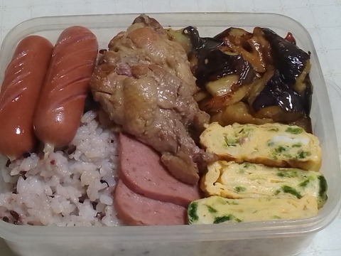 レバーニラ炒めとむき海老の卵焼きと茄子フライでお昼ご飯。
