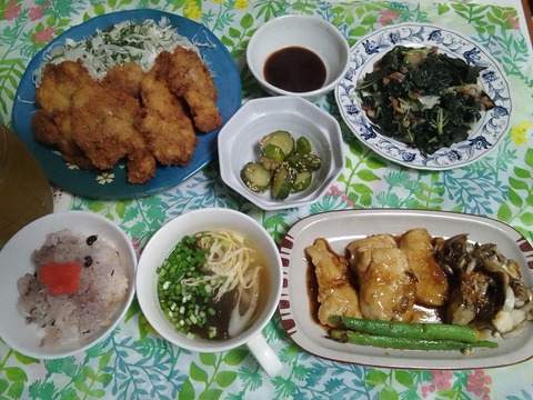 豚カツと鶏むね肉の照焼きでお昼ご飯。