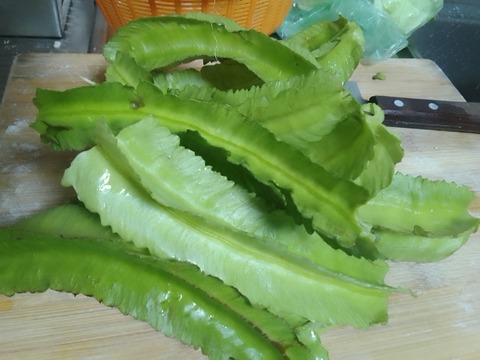 うりずん豆の青椒肉絲風と鮪ボール揚げでお昼ご飯。
