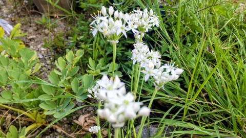 ニラの花の季節。。厚切りハムのサンドで朝食。