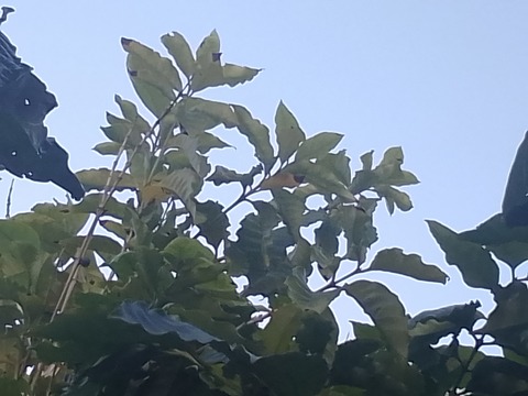 バタフライピー揚げと‥イカとハムのサンドイッチで朝食。