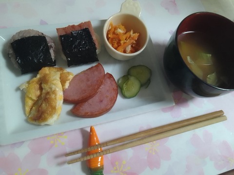 インフルエンザの朝…ハムサンドイッチで朝食。