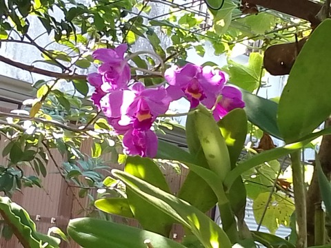 庭のカトレアの花・・と‥全粒粉のパンで卵サンドの朝食。
